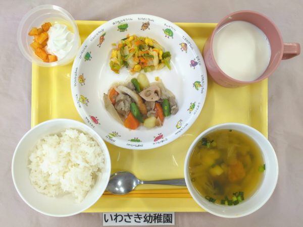 また、本日の「いわさき幼稚園」の給食は、 11月生まれのお友だちをお祝いする特別メニューです。 心を込めて作りました。