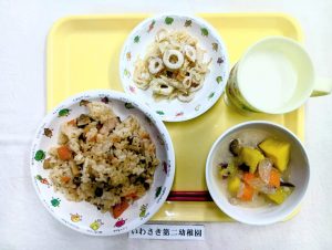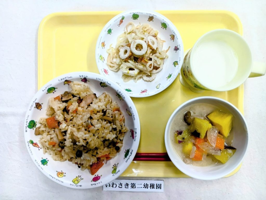 本日、「いわさき第二幼稚園」は給食で「いわさき幼稚園」はお家のお弁当でした。