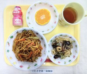 本日の「いわさき幼稚園」の給食は、 11月生まれのお友だちをお祝いする特別メニューです。 心を込めて作りました。