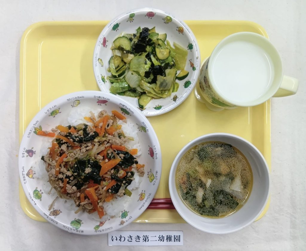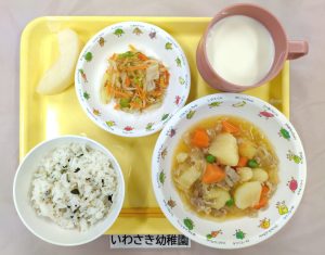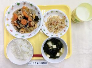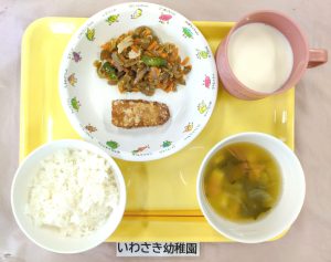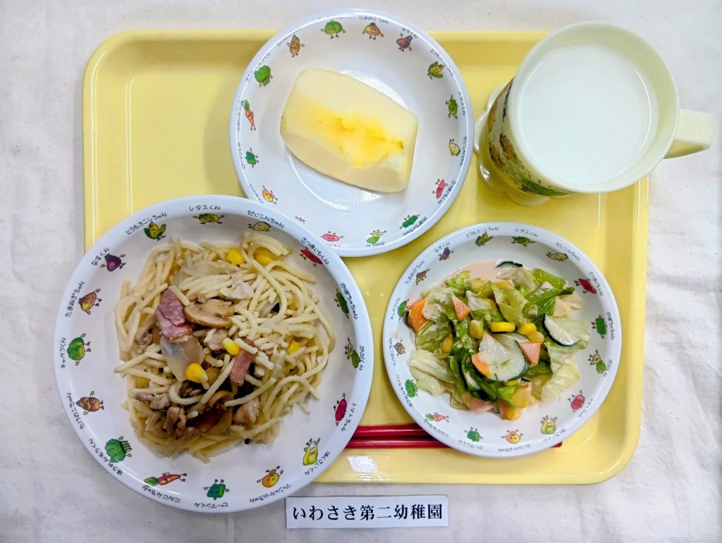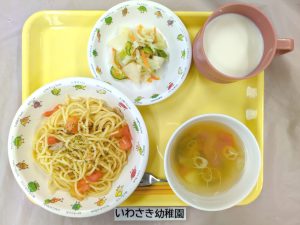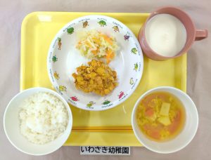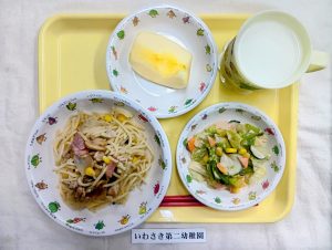 本日は「いわさき幼稚園」のみ給食で、「いわさき第二幼稚園」お弁当でした。