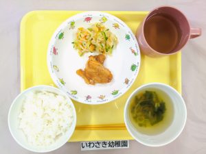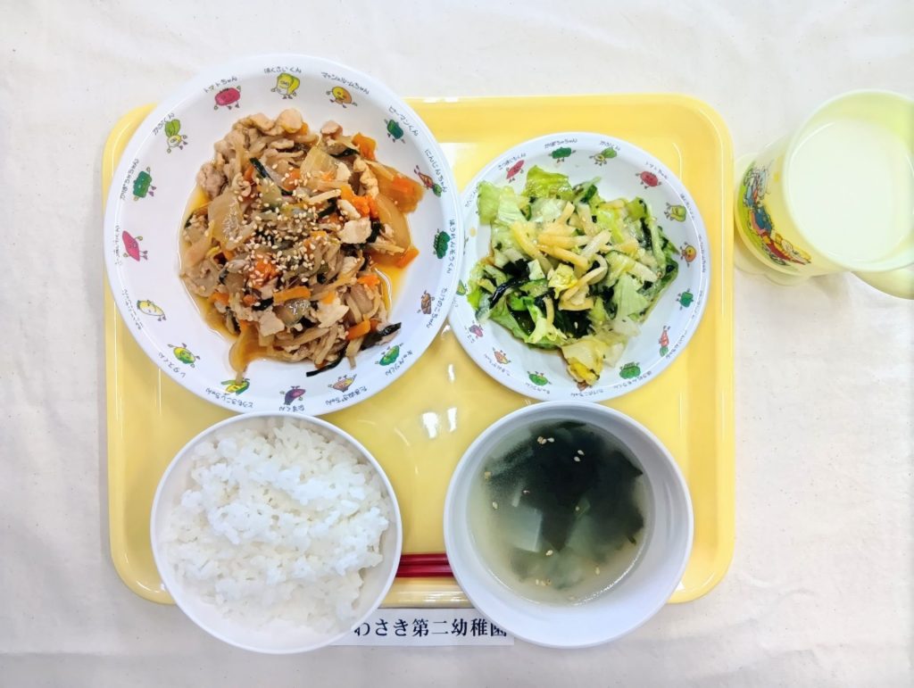 「いわさき第二幼稚園」の給食は、本日、近隣の農家さんの朝採り野菜を使用しています。レタスをサラダに使用し、