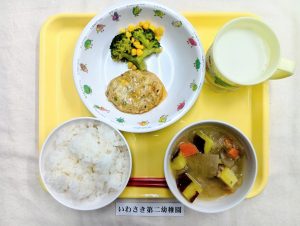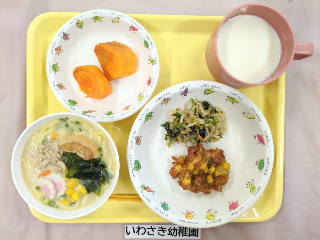 本日の「いわさき幼稚園」の給食は、福岡県の「 JA全農ふくれん」様から子どもたちに“富有柿” をご提供していただきました。